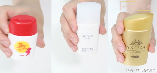 外貌協(xié)會篇本期我們要評測的幾款防曬是,安熱沙資生堂小金瓶防曬霜(17年版),怡思丁防水隔離防曬霜,蘭蔻多重防護清透防曬露(海外版),蘇菲娜透美顏日間倍護防護乳(白蕾絲),近江兄弟紅色小熊和藍色小熊兩款防曬。