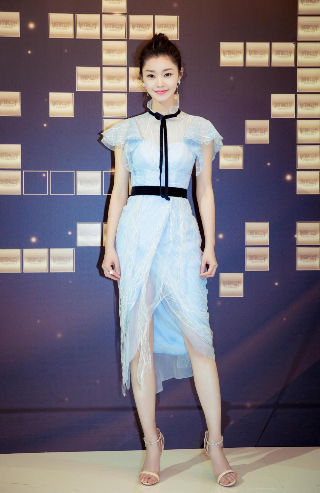 扎起丸子頭的宋軼,甜美可人,身穿著一襲藍色輕紗裙,淡雅清新,腰間系上黑色腰帶,勾勒出纖瘦的腰身,不規(guī)則的裙擺設計,露出纖細的美腿,給人一種大長腿的既視感,十分搶眼。