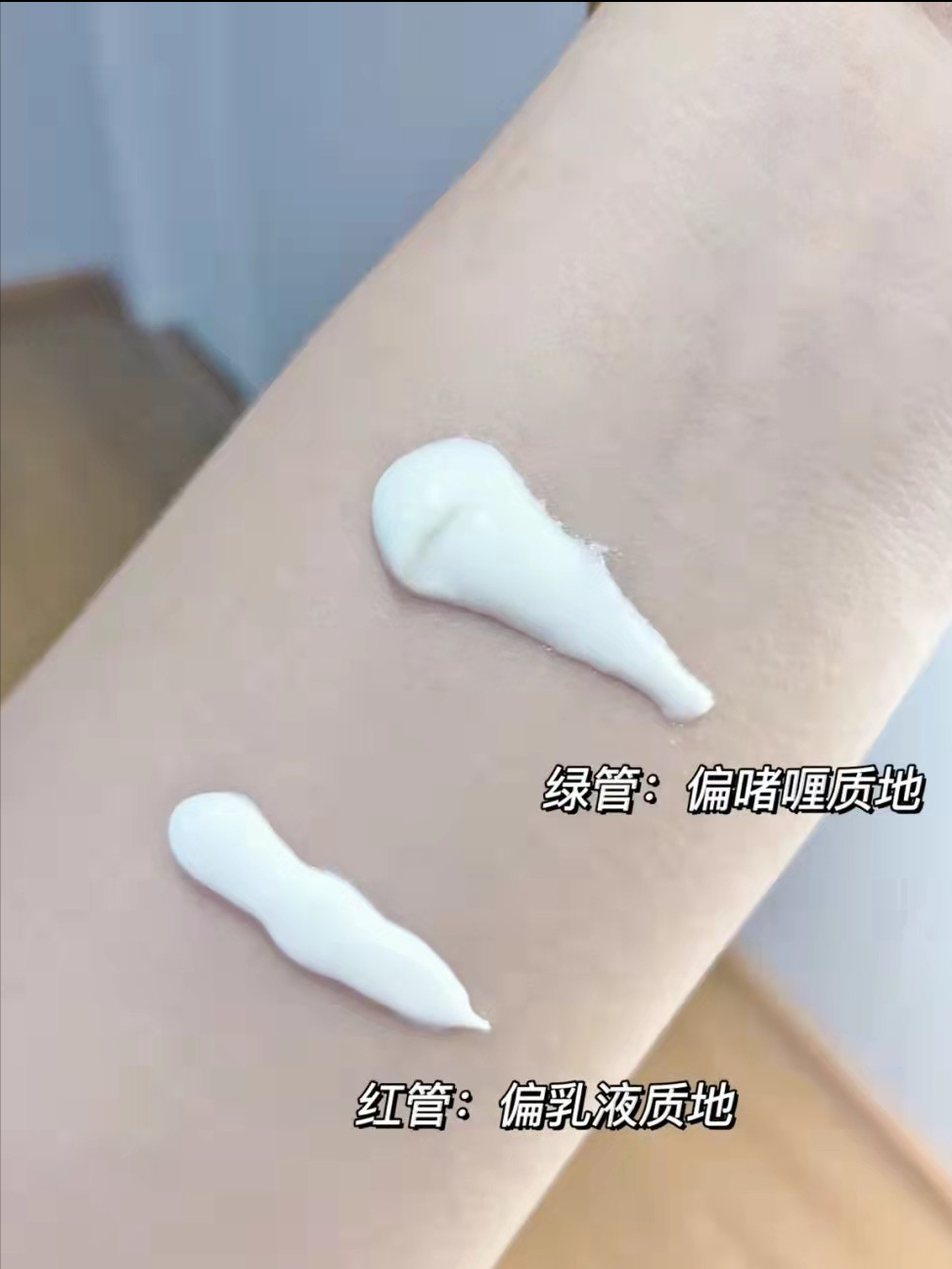 同系列的防曬霜有兩款單品,綠色款保濕啫喱般膚感,更適合偏干性肌膚使用;粉色款是清透水感質(zhì)地,更能滿足偏油性肌膚的膚感需求,涂抹在臉上能夠達(dá)到一定的控油果。防曬霜帶有輕微潤色功,使用后皮膚有稍作提亮,但是不會(huì)過分假白。