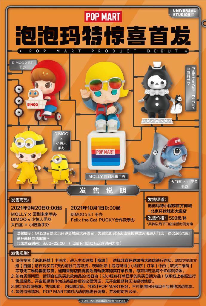 除了在概念店布局設(shè)計(jì)上不計(jì)成本,泡泡瑪特也將該店作為了重要的營銷領(lǐng)地。在推出的哈利波特小黃人聯(lián)名潮玩后,9月16日,泡泡瑪特宣布在概念店進(jìn)行北京環(huán)球度假區(qū)的五款電影聯(lián)名款手辦的揭幕,包括小黃人、大白鯊、ET等環(huán)球知名IP。