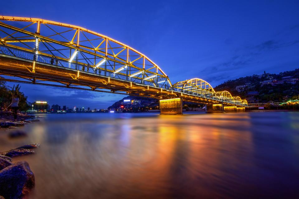 介紹:中山橋是蘭州歷史悠久的古橋,也是黃河第一座真正意義上的橋梁,于1907年由德國(guó)人修建,橋梁所有的建材都為德國(guó)原產(chǎn),至今有百余年歷史。中山橋位于蘭州城北的白塔山下、金城關(guān)前,是蘭州市內(nèi)標(biāo)志性建筑之一,站在橋上可遠(yuǎn)眺白塔入云,母親河奔騰流過(guò)。中山橋以西2km就是黃河母親雕像,以東3km處是的《讀者》雜志社。
