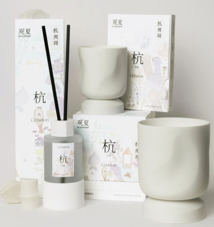 繼蘇州甜系列之后,觀夏新發(fā)上新了中國甜主題的第二個系列——杭州甜。本次杭州甜系列以「青綠」為名,產品包括陶瓷精油木芯、香薰蠟燭、陶瓷精油香插、精油造型香磚和定制火柴。