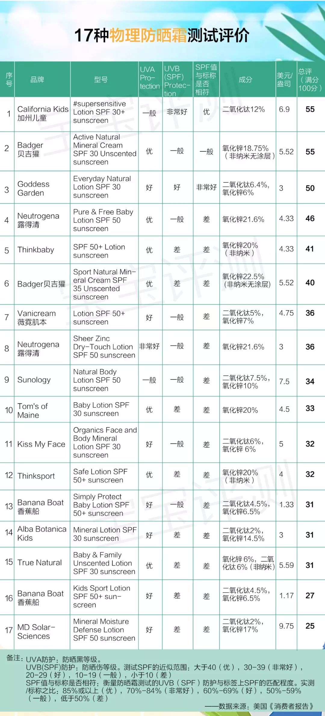 關(guān)于寶寶防曬霜的選擇,4月中旬,笨爸爸已經(jīng)結(jié)合美國《消費者報告》(consumereport)、德國商品檢測基金會(StiftungWarentest)、美國環(huán)境工作組織(EWG)等多個知名機構(gòu)的測評結(jié)果,給大家提供過一份選購指南。