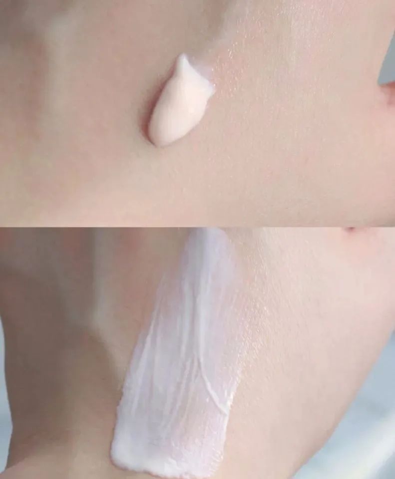 淺粉色乳霜膏體質(zhì)地,觸感柔潤,質(zhì)地介于面霜和乳液之間,延展性很好,滋潤但是不油膩,成膜很快不假白,成膜后是輕微柔光。