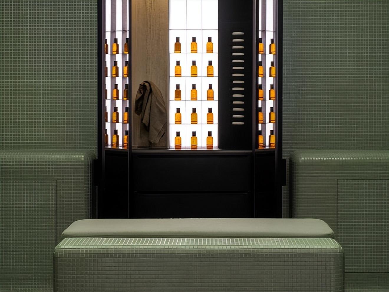 對于居家空間的想象將伊索“香氛空間”詮釋成了一間浴室 ,鋪滿單色瓷磚的房間之中藏有兩座“香氛衣柜” ,其中隱藏了 Aesop 伊索香水系列的迷人世界──只有在打開時(shí)才能一探究竟。
