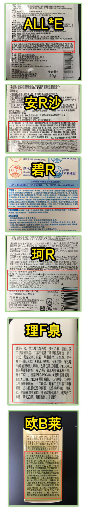 歐S漫、安R沙、A*C、蘇F娜,含有一定風險成分,但防曬能力,皮試后無過敏反應可使用。