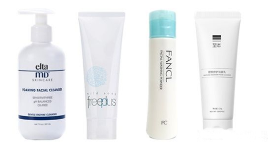 例如elta md氨基酸泡沫洗面奶、芙麗芳絲凈潤洗面奶、fancl柔滑保濕潔面粉、至本舒顏修護潔面乳。