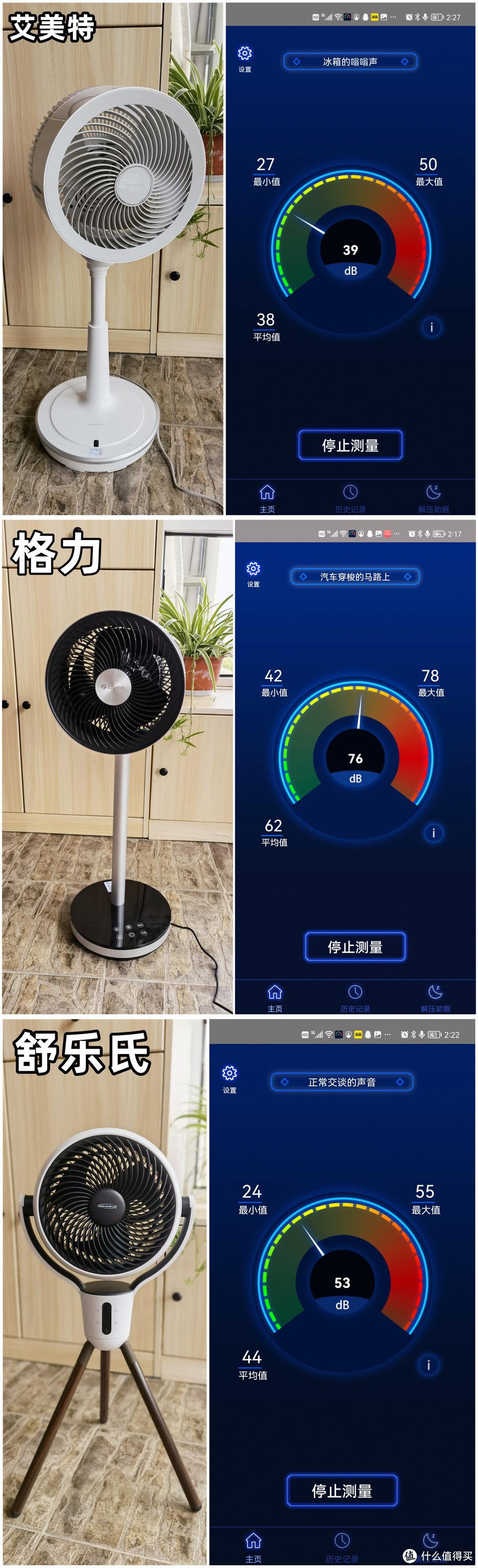性能參數(shù)總結(jié):從售價(jià)來看,3款基本持平,只有小幾十差距。從電機(jī)來看,都是直流變頻電機(jī),舒樂氏品牌強(qiáng)調(diào)是無刷電機(jī),耐用度更高一些。從大轉(zhuǎn)速來看,艾美特沒有公布數(shù)據(jù),另2款分別是2000和2300轉(zhuǎn)每分鐘,舒樂氏稍稍勝出。從風(fēng)檔選擇來看,艾美特的32檔吊打另2款的8、9檔。但冷靜想想,我們?nèi)粘J褂煤孟褚膊⒉惶枰玫侥敲醇?xì)微的風(fēng)力調(diào)節(jié)。畢竟普通電扇5-6個檔就夠用,循環(huán)扇有8-9檔已然選擇豐富了,32檔存在的意義可能更像打架前先秀個肌肉,震懾作用更大。從扇葉來看,都是3片渦流扇葉,也都有聚風(fēng)筒設(shè)計(jì),說明他們是名副其實(shí)的循環(huán)扇,沒有偷工減料。送風(fēng)距離和風(fēng)速,艾美特也沒有找到數(shù)據(jù)。另2款相比,格力稍勝。搖頭角度方面,舒樂氏獨(dú)有向下10°這一設(shè)置,左右方向的120°也是碾壓了其他。噪音數(shù)值方面,艾美特和舒樂氏相當(dāng),格力卻高出許多,稍后我們體驗(yàn)產(chǎn)品時,一杯會用噪音檢測軟件重點(diǎn)來測一測。高度調(diào)節(jié)方面,格力是固定高度,舒樂氏的42-94cm區(qū)間比艾美特的62-74cm范圍更大,適用的場景也就更多。拆洗方面,3款的網(wǎng)罩都可以拆下來。但舒樂氏是可以比較方便地整機(jī)拆洗,清潔的時候能更加徹底一些??刂品绞缴?,格力比其他兩款多了手機(jī)遠(yuǎn)程操控技能,更加智能一些。