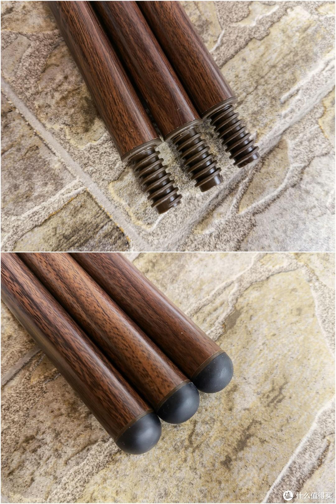 因?yàn)槭鏄肥系呐浼沁@樣的,它的每條腿都由2截木紋桿拼接而成。