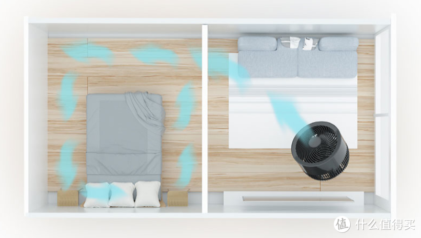 而空氣循環(huán)扇可以同時上下左右方向搖頭,讓室內(nèi)空氣循環(huán)不留死角。