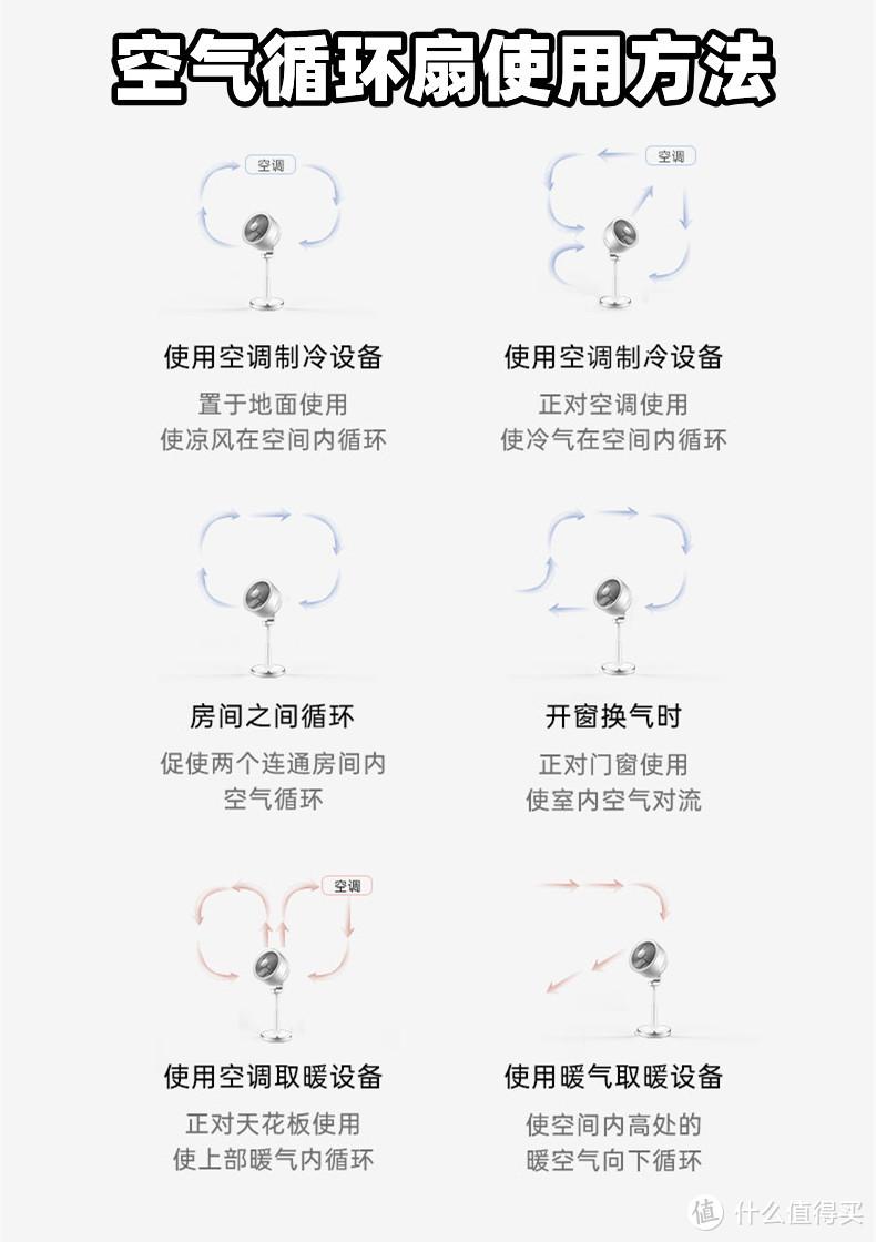 在跟空調(diào)搭配使用時,可以使下沉的冷空氣或者上浮的暖空氣加速流動起來,讓整個空間溫度更均衡。