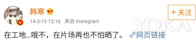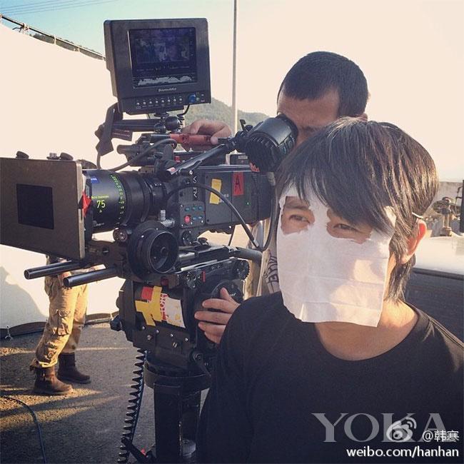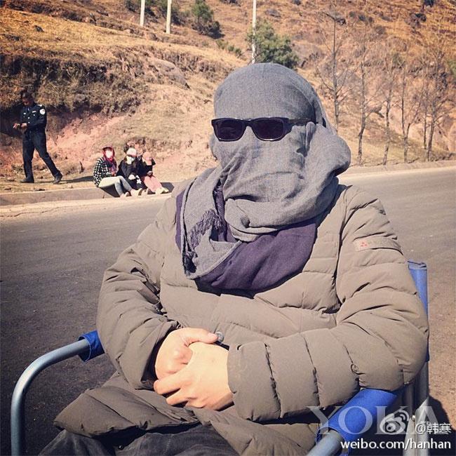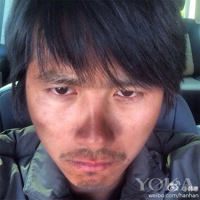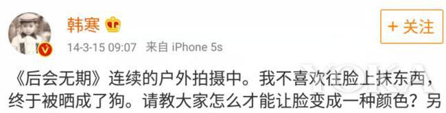 韓寒由于不喜歡在臉上抹防曬霜,結果被曬成土黑色。