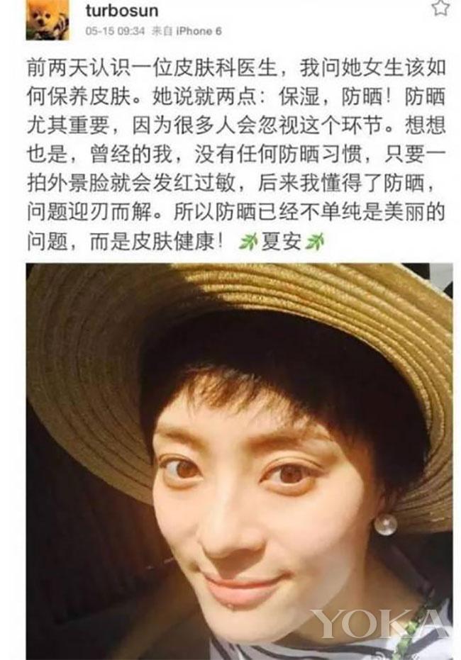 相比上面的硬防曬,軟防曬也是相當重要的。孫儷就已經(jīng)養(yǎng)成了使用防曬霜的習慣。
