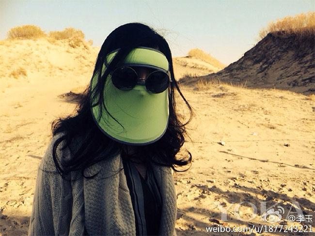 范冰冰戶外活動中,一般都會準備全套的防曬裝備,不少網(wǎng)友表示:終于知道自己為什么這么黑了。