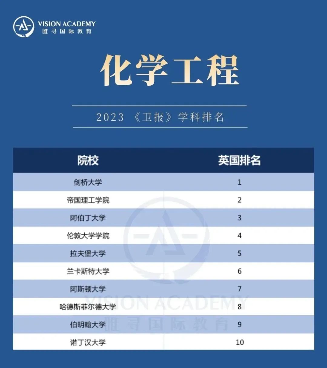 英國是早開設(shè)化學(xué)工程專業(yè)的之一,近幾年化學(xué)工程專業(yè)越來越受歡迎,申請人數(shù)也在逐年增加。在2023年化學(xué)工程專業(yè)的排名中,劍橋大學(xué)排在第一位。