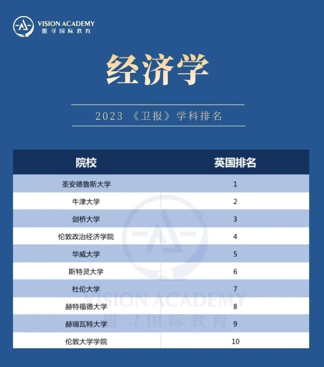 在2023年經(jīng)濟(jì)學(xué)專業(yè)的排名中,圣安德魯斯大學(xué)超過牛劍和LSE,排在第一位。