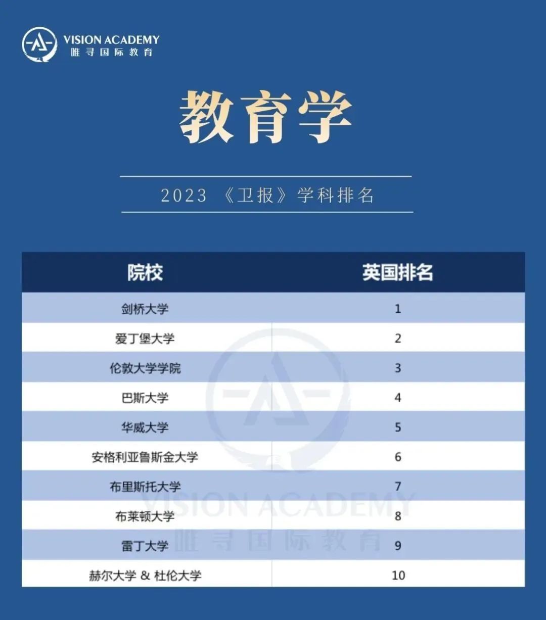 英國的教育資源一直是領(lǐng)先的,如今越來越多的小伙伴選擇了教育專業(yè)。在2023年教育學(xué)專業(yè)的排名中,劍橋大學(xué)排在第一。