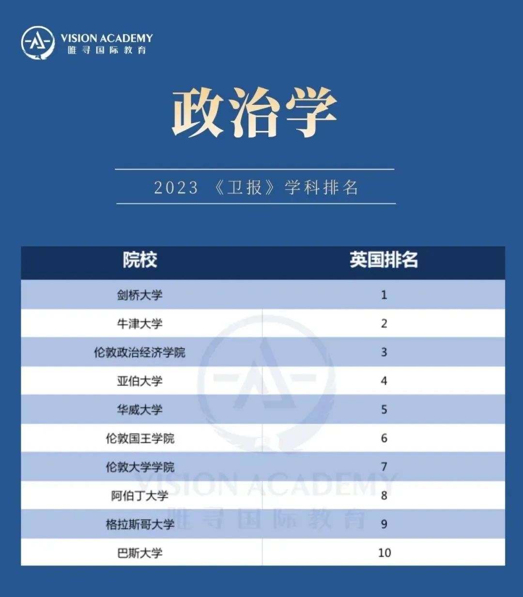 在2023年政治學(xué)專業(yè)的排名中,劍橋大學(xué)同樣排在第一。