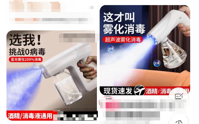 功能被夸大了,其藍(lán)光只具有照明功能,而沒有消毒作用。注意,酒精和84消毒劑經(jīng)噴霧槍霧化后,容易被人體吸入,會(huì)對(duì)口、鼻甚至肺部黏膜造成傷害。