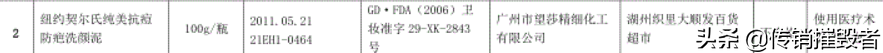 商標(biāo)故事講完了,再來說說產(chǎn)品的問題。據(jù)浙江省祛痘類化妝品衛(wèi)生質(zhì)量專項(xiàng)整治情況匯總表顯示,由望莎公司生產(chǎn)的“紐約契爾氏純美抗痘防疤洗顏泥”因使用醫(yī)療術(shù)語“防疤”被檢測為不合格。