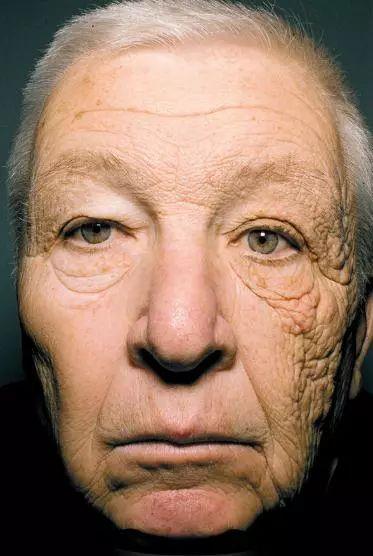 這張照片來自英國一家醫(yī)學刊物登出關于光老化危害的科普文章,圖片里的這位老人因為工作而左臉常年受到紫外線照射變得老化,和右臉相對比,直觀的展現(xiàn)紫外線對肌膚老化的傷害。