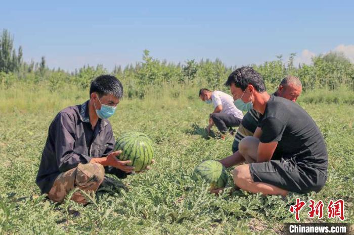 阿瓦提縣黃瓤西瓜進(jìn)入采摘期。 關(guān)山飛渡 攝