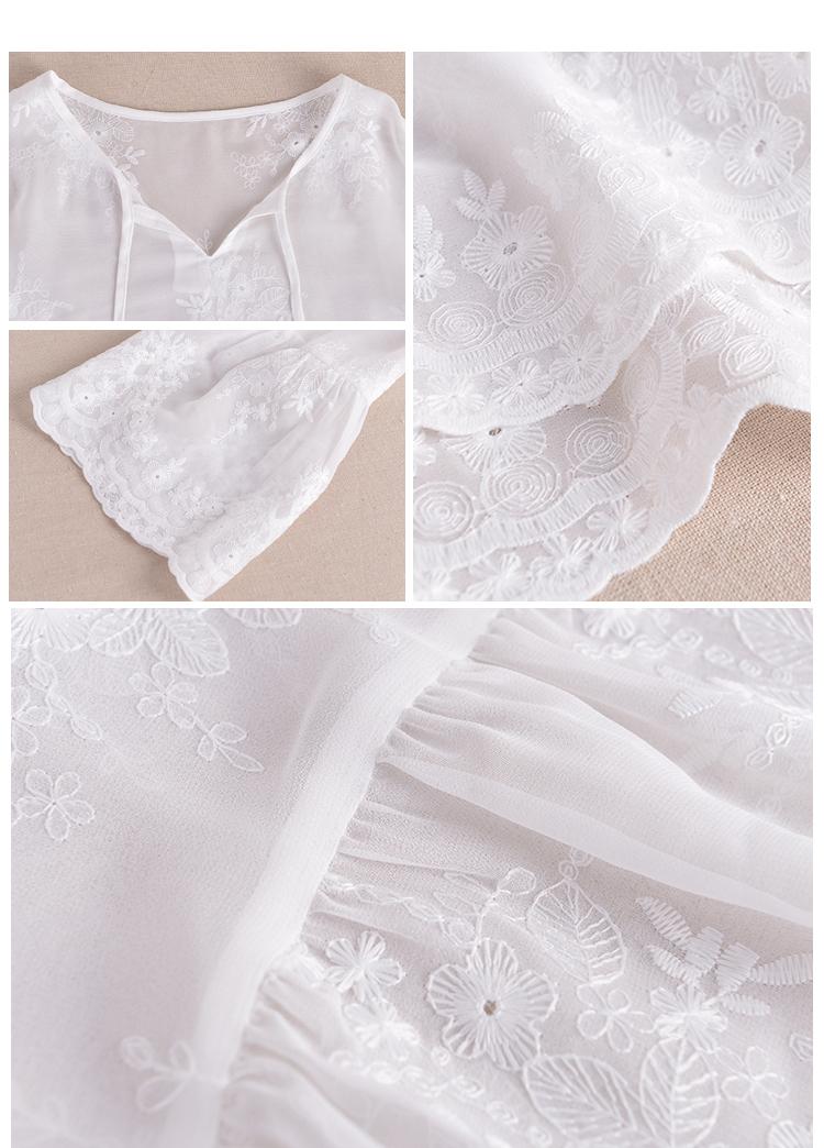 小V領(lǐng)系帶文藝氣質(zhì),精致的鉤花設(shè)計和喇叭袖結(jié)合,起到了很好的減齡果,內(nèi)贈親膚小吊帶,若隱若現(xiàn)的透視感又帶有一絲小性感,美麗的同時還能防曬,多好!