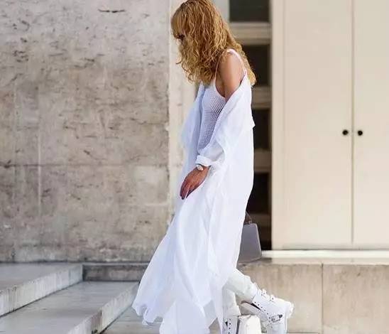 透氣仿絲繡花網(wǎng)紗面料,輕薄涼爽,精致的花朵刺繡,更顯著一股高度的奢華感,白色簡約純凈又百搭。
