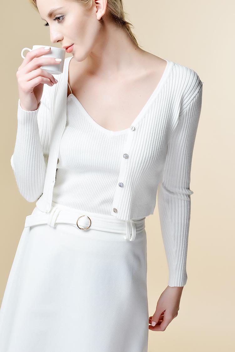 此款針織衫,小V領(lǐng)的款式,讓小臉看起來更加的精致,豎向螺紋坑條設(shè)計修飾身形,短款版型露出內(nèi)搭背心吊帶,完全不用擔心遮住你想要展現(xiàn)的美。多色可選,滿足你百變的需求,適宜防曬打底,早晚出門或空調(diào)房均可穿著。