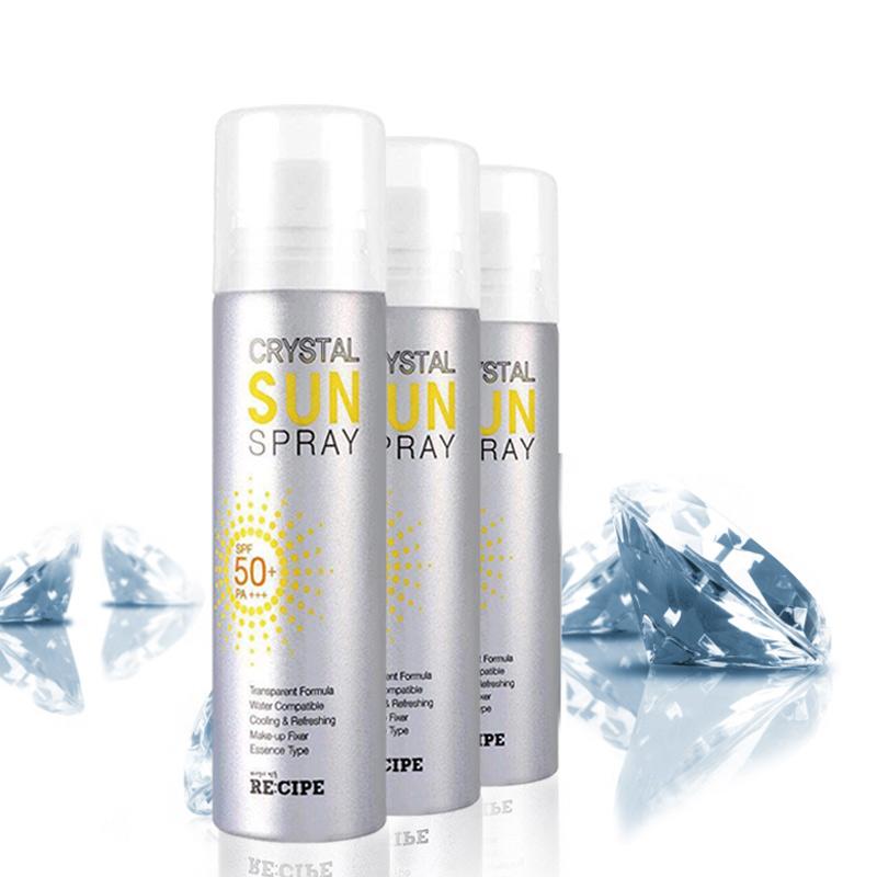 RE:CIPE 水晶防曬噴霧水有SPF50+/PA+++高倍數(shù)防曬值,防水防汗,孕婦和敏感肌也可以使用。