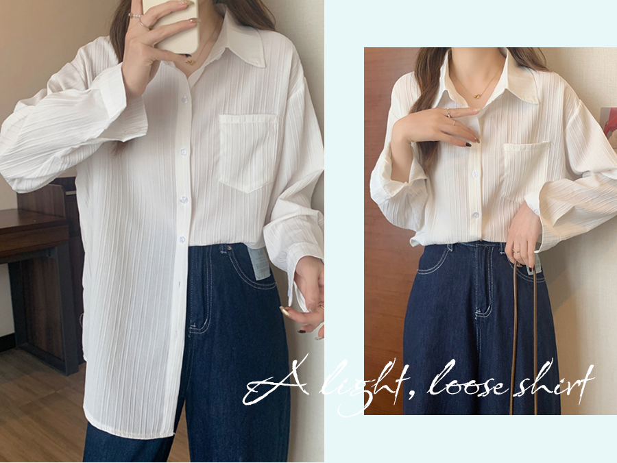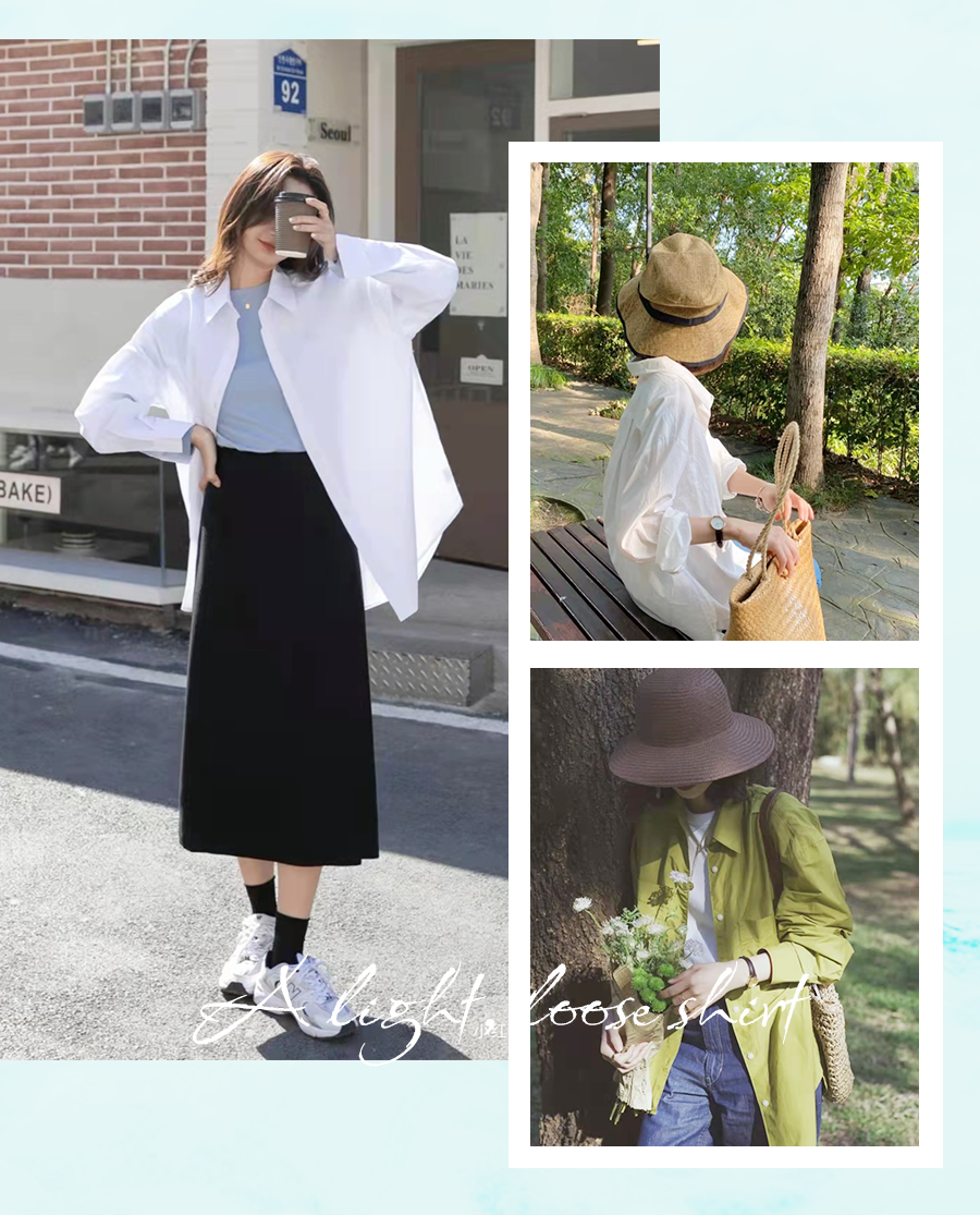 輕薄寬松的襯衫穿著也不會(huì)太熱,相比撞衫率99%的防曬服