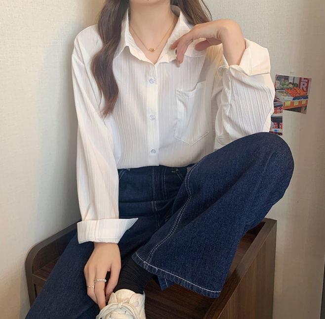 這種純色襯衫自帶百搭CP的屬性,外穿、內(nèi)搭或是疊穿隨意搭配。