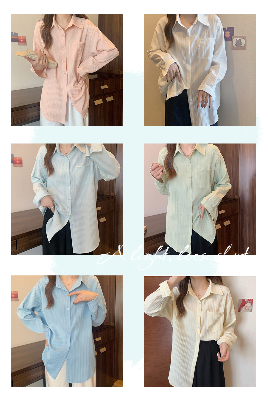 全部都是基礎(chǔ)款的純色襯衫,哪一款都好看,哪一款都好搭。