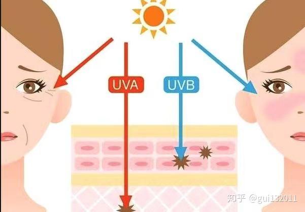 紫外線分為UVA、UVB、UVC和UVD四種類型。其中,陽光中的UVA和UVB能夠穿透大部分玻璃進(jìn)入室內(nèi),并穿透皮膚,對皮膚下的不同結(jié)構(gòu)造成影響。