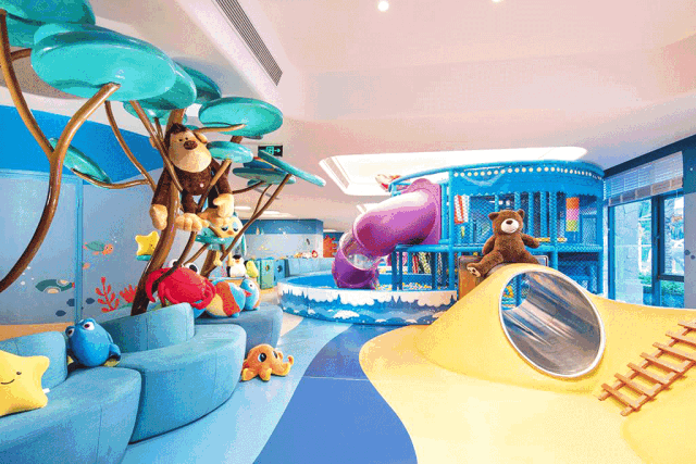 1500平室內(nèi)外兒童樂園也是酒店一大亮點,有分成6大功能區(qū)的室內(nèi)樂園,也有戶外兒童戲水玩樂區(qū),寶貝一來即被圈粉!而且這里不單單是讓小朋友自己玩,更是在專業(yè)工作人員的帶領(lǐng)下,做不同難度和級別的親子活動、益智游戲,有歷練才藝的,有鍛煉寶貝動手能力的,更有全家總動員,讓寶貝在玩樂中收獲快樂與成長,度過愉快的親子度假時光。