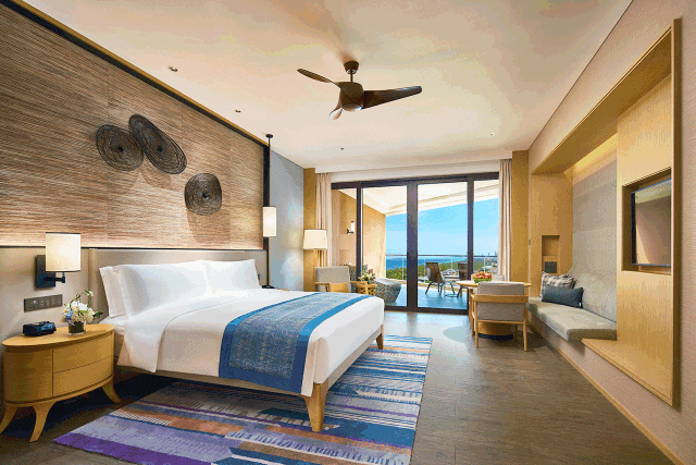 客房現(xiàn)代時尚,寬敞舒怡,配有大沙發(fā)和大大的陽臺,海景房躺在床上就能看海。酒店還有五彩斑斕的陽臺花園主題親子房,配有小帳篷兒童玩具等,將“兒童樂園”搬進(jìn)了客房, 想要給孩子專屬的玩樂天地和驚喜可以選擇入住。