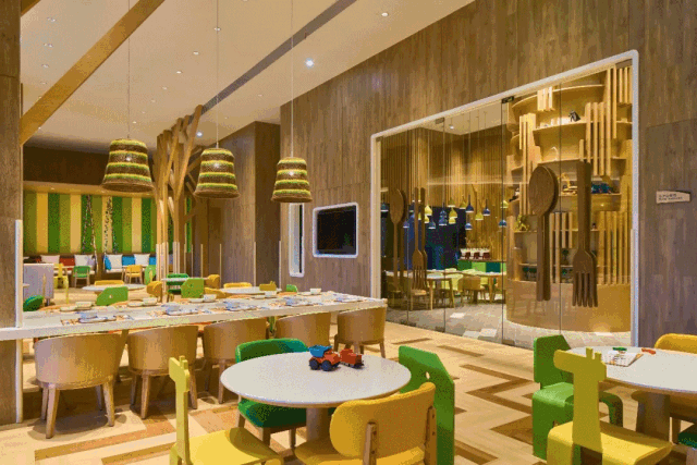 酒店共有7間餐吧,其中特色的是三亞酒店中少有的兒童餐廳—趣,與全日制西餐廳相連,自助早晚餐時都可免費坐過來,還為寶貝特別準(zhǔn)備了專屬美食。天真靈動的童趣設(shè)計裝飾與可愛的兒童專屬餐具桌椅,讓小朋友終于可以乖乖地吃飯。此外,兒童餐廳每日還會舉辦兒童烹飪課程,或者是變裝表演(服裝餐廳免費提供)等親子活動,讓小朋友們不僅吃的好玩得好,更能度過愉悅的時光。
