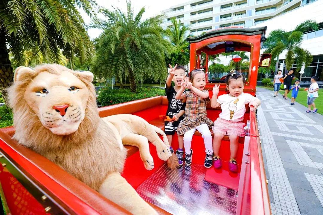 爸媽在辦理入住時可以拿到一張親子活動安排表,所有活動統(tǒng)統(tǒng)免費(要提前預(yù)約)。只要小朋友吃得消,從早玩到晚沒有問題。如果想自己安排時間,兒童俱樂部、戶外兒童游樂區(qū)、兒童水上樂園都是親子玩樂的好去處,此外還可以帶娃去沙灘挖沙在海邊椰林樹下的吊床躺著吹海風(fēng),泳池邊的礦泉水、浴巾、兒童臂漂、救生衣、小船以及沙灘的挖沙工具都是免費提供。大一點的寶貝還可以跟著爸媽一起去騎行(酒店有免費自行車提供),對了酒店的觀光小火車也是可以免費乘坐的,每日還有親子泡泡趴一片歡樂的海洋不要錯過。