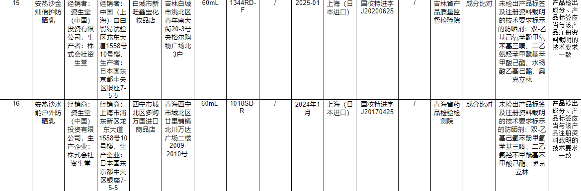 此前,藥品監(jiān)督管理局于2022年9月30日公布的《藥監(jiān)局關(guān)于20批次不符合規(guī)定化妝品的通告》(2022年第48號)顯示,資生堂(中國)投資有限公司經(jīng)銷、株式會社資生堂生產(chǎn)的安熱沙水能戶外清透防曬乳成分比對不符合規(guī)定。