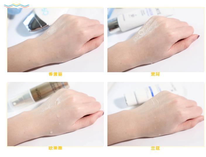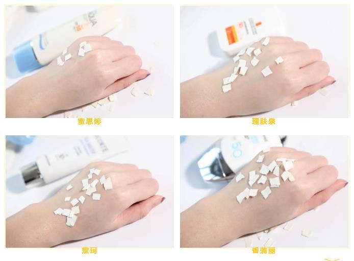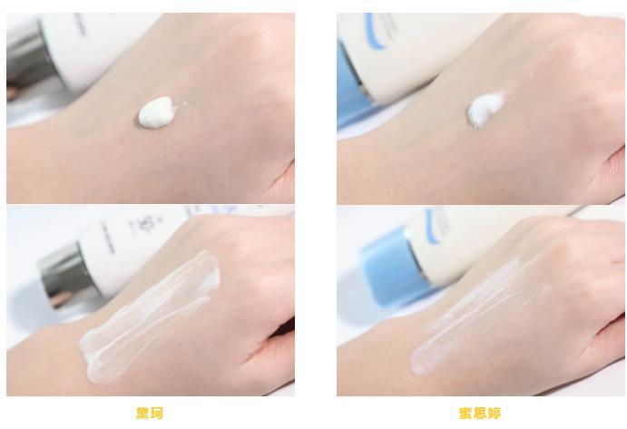 黛珂、蜜思婷、理膚泉和安耐曬這4款質(zhì)地都水潤(rùn),尤其是理膚泉和安耐曬,流動(dòng)性強(qiáng),理膚泉抹開(kāi)后甚至都感覺(jué)上面有一層水膜。