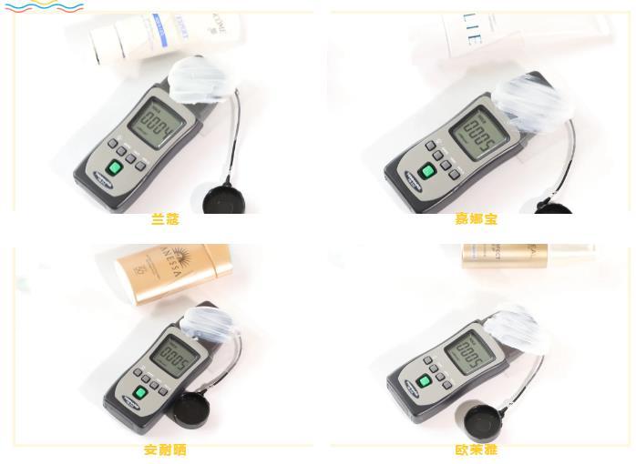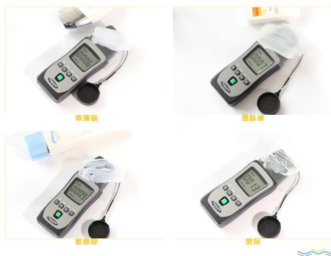 小千斥巨資搞來(lái)了這個(gè)測(cè)試紫外線的機(jī)器,測(cè)出當(dāng)時(shí)的紫外線指數(shù)是1756μw/cm2。然后將防曬抹在塑料薄片上,測(cè)出在每一款防曬霜的阻擋下,剩余的紫外線數(shù)值。