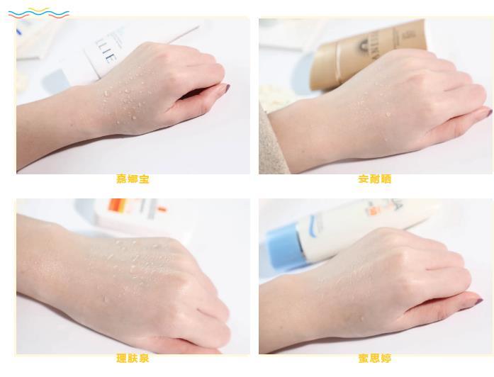 嘉娜寶、安耐曬、理膚泉和蜜思婷的防水性都還是不錯(cuò)的,好的安耐曬和嘉娜寶,看那一顆顆小水珠掛的,真的讓人賞心悅目且安心