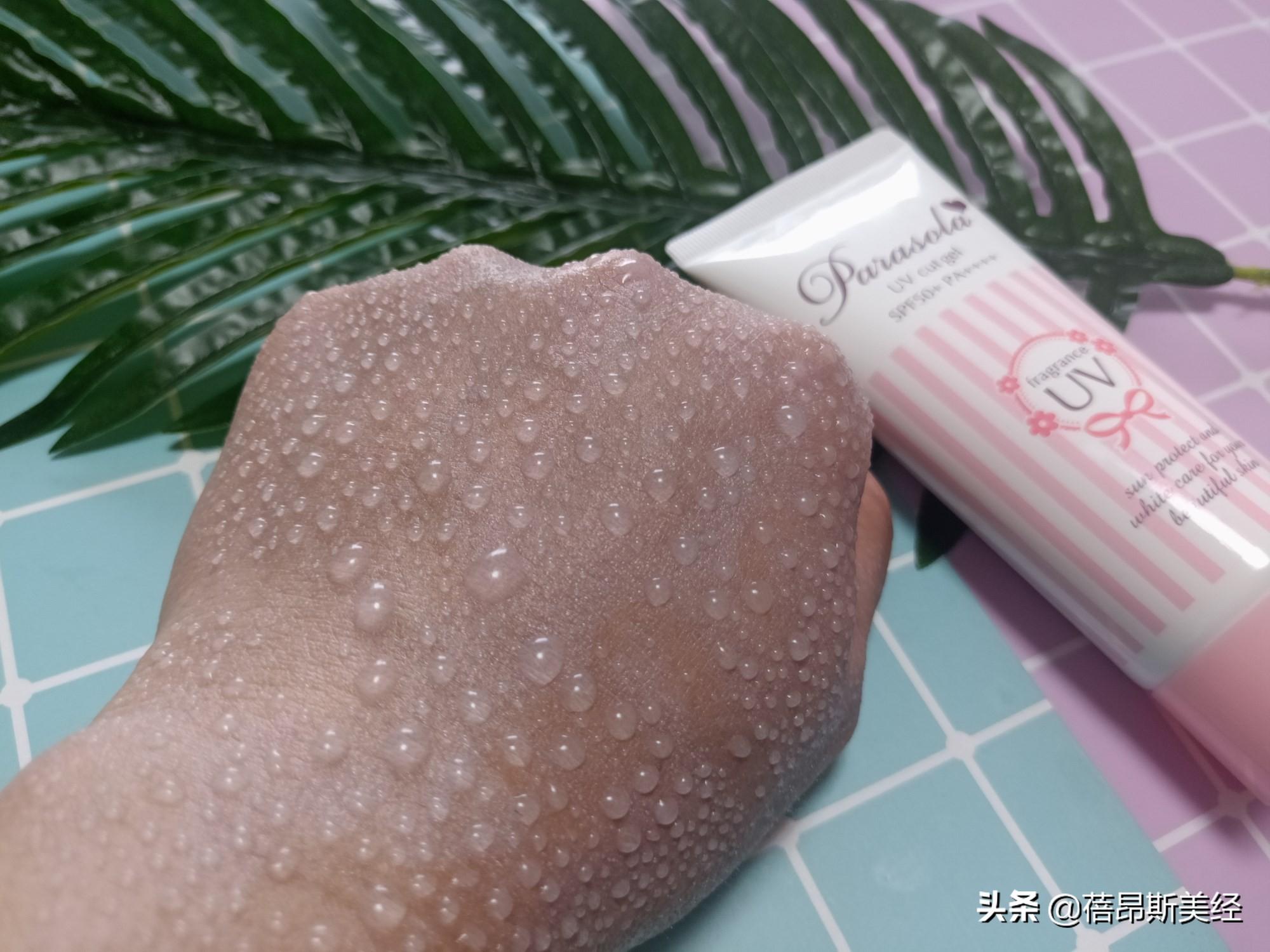 高指數(shù)的防曬霜,一般要防汗防水。我在涂了防曬霜的手背上噴水,手背上馬上出現(xiàn)了大顆的水珠,可見(jiàn)防曬霜沒(méi)有被水溶化,防水性能不錯(cuò)。不像有的防曬霜,一噴就水花花的,水乳交融,根本不防水。