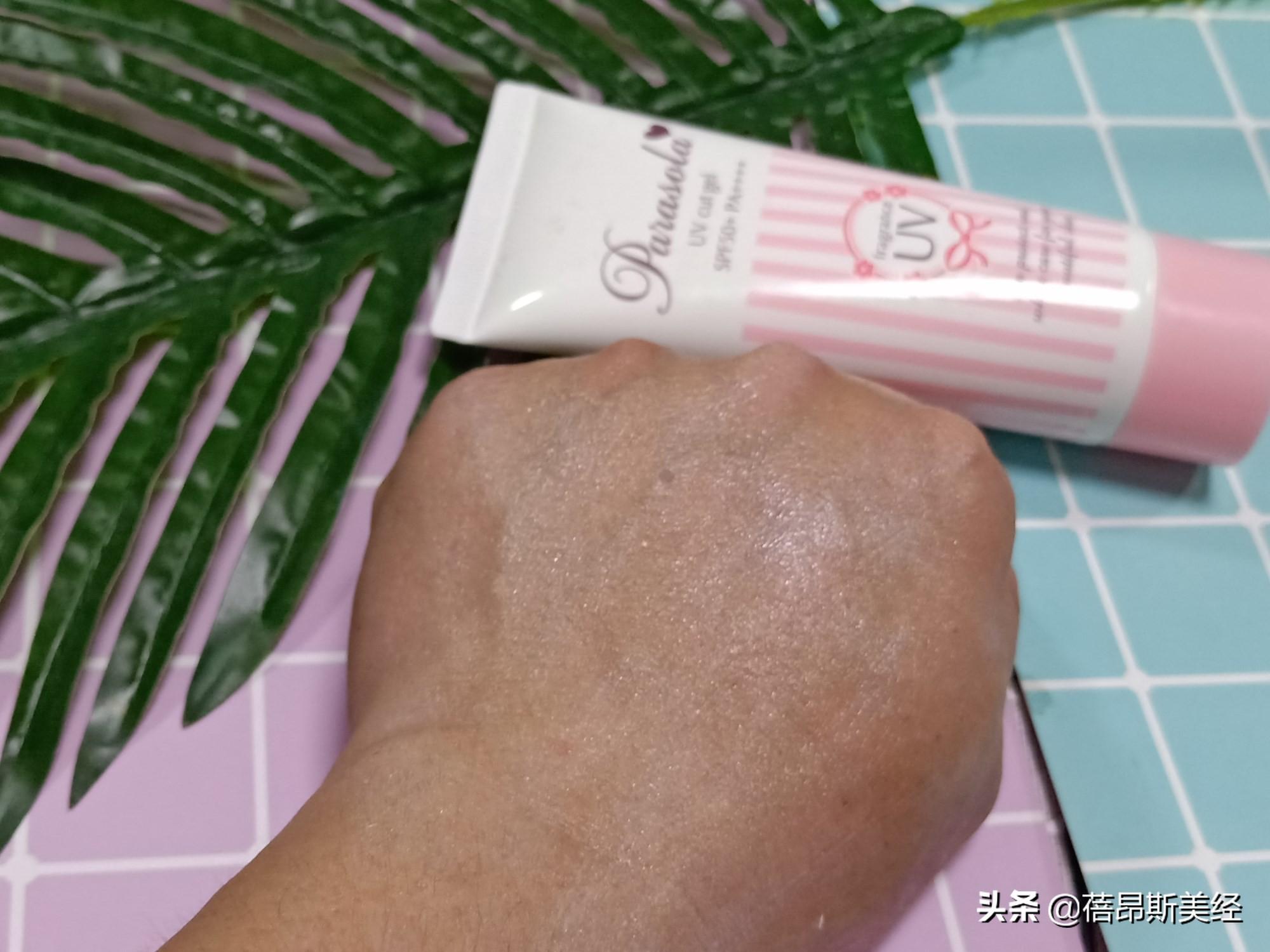 將防曬霜涂在手背上,慢慢推開(kāi),感覺(jué)跟一般的身體乳沒(méi)有多大區(qū)別,當(dāng)然,膜感慢慢也起來(lái)了,用手指點(diǎn)一點(diǎn)防曬霜,有膠著感,察看手背,顏色有變化,白了不少。