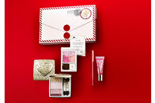 此套裝包括限定色眼影,珠光粉色唇彩,限定色眼線筆和腮紅~套裝的設(shè)計(jì)很有意思,仿佛是小心翼翼的將平安夜裡捎來(lái)的一封情書(shū)拆開(kāi),里面是填滿「愛(ài)的瞬間」的浪漫限定彩妝,充滿了暖暖的浪漫和愛(ài)意~