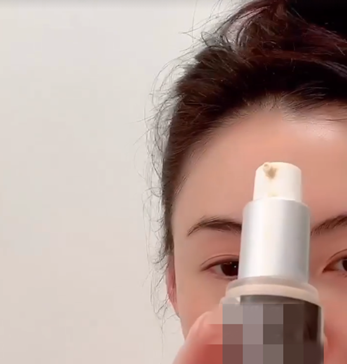 之后,她對著鏡頭示范涂防曬霜,并介紹產(chǎn)品的好處。
