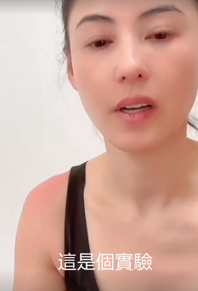 張柏芝表示,昨天她去游泳了,結果將肩膀皮膚曬傷,碰一下就很痛,但我的臉完全不疼,因為我涂了防曬霜。