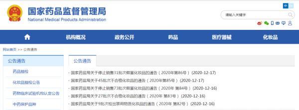 藥監(jiān)局發(fā)布關于27批次不合格化妝品的通告