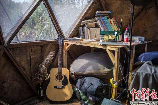 唐冠華和邢振夫婦居住的圓頂木屋室內一角。