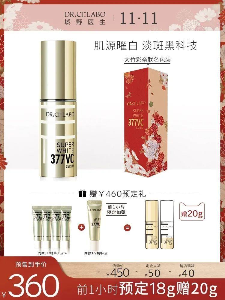 禮贈:①買18g正裝,送20g同款小樣,實際到手精華38g;②原價500元,雙十一活動價450元,下定金立減50元,參加跨店滿減(滿300-40,可減40元),實際到手價格360元
